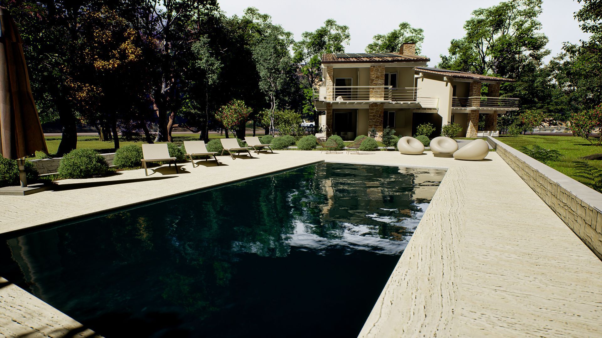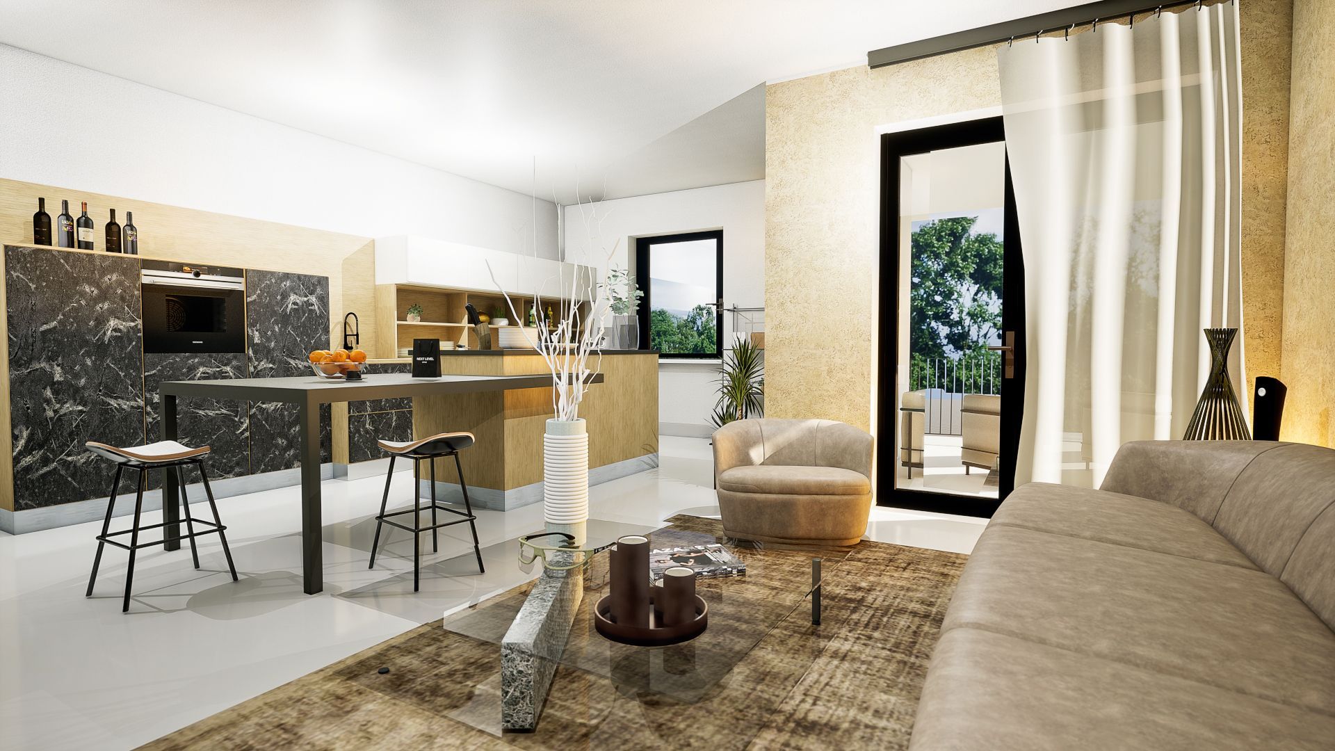 La particolarità dell'intervento, oltre all'alta efficienza energetica dovuta alla classificazione in classe A4, è data dall'assenza di spese condominiali fatta eccezione per le spese di manutenzione della elegante piscina, dove si